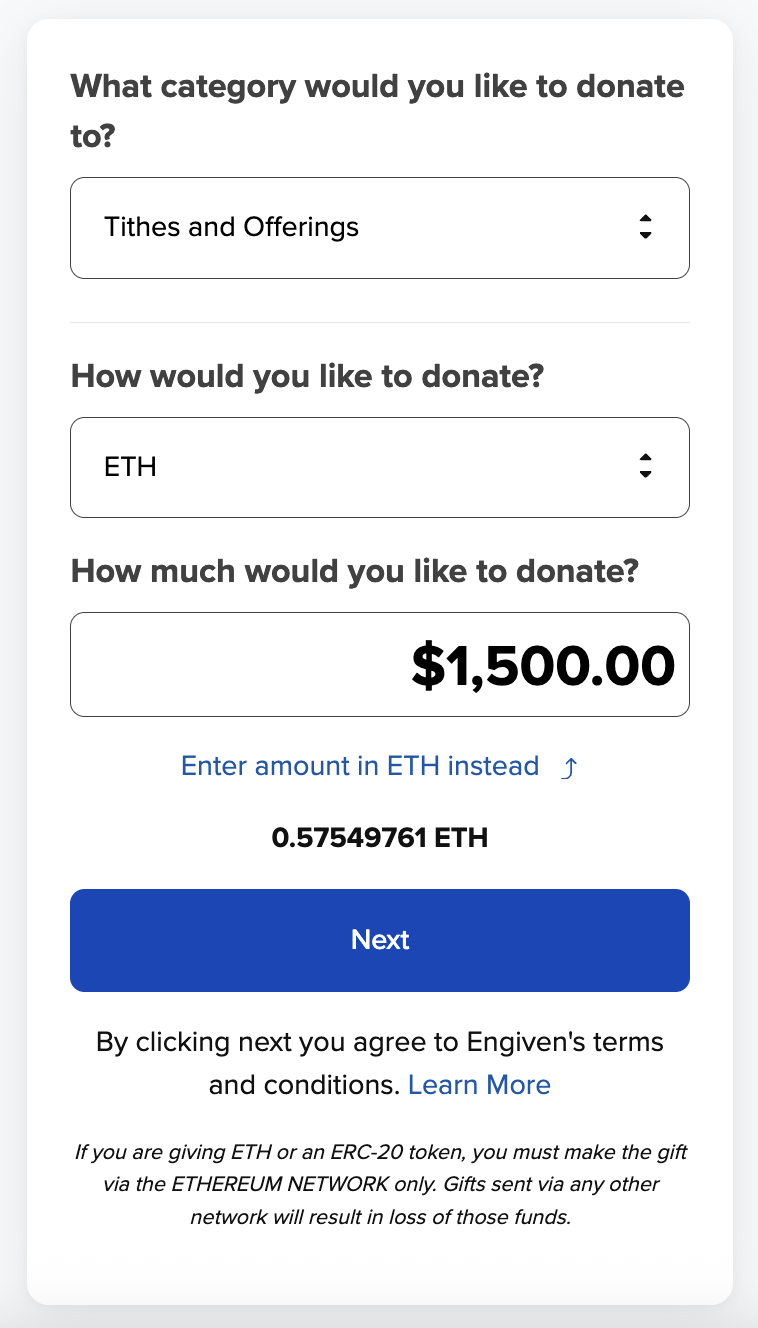 Cryptocurrency Giving