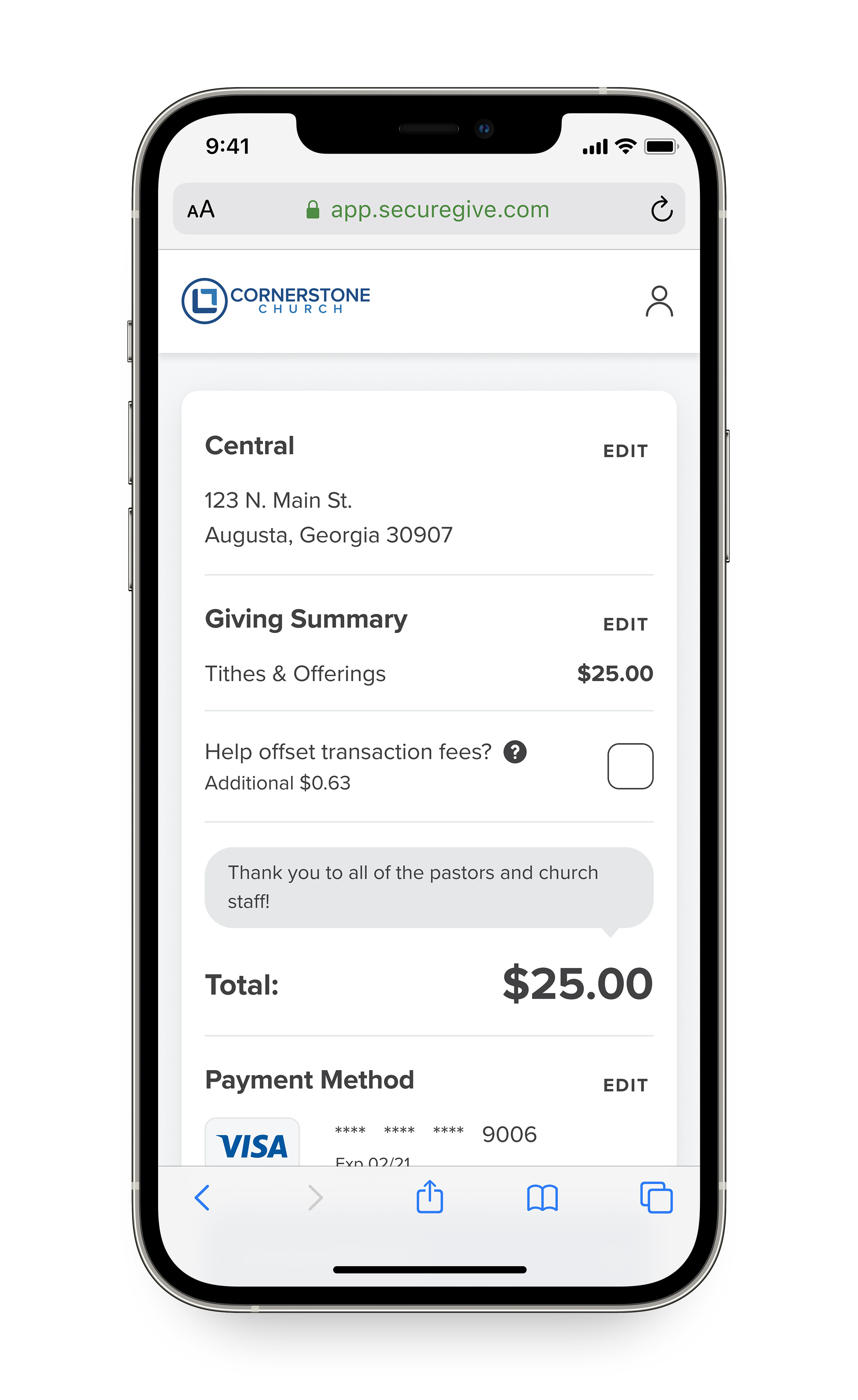 If the organization that you give to uses mobile giving, then follow the instructions below to give through the SecureGive app on your mobile device.